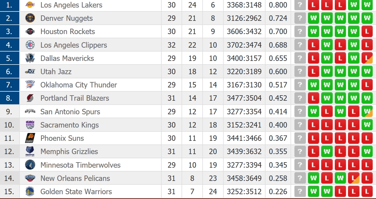 În urma acestui succes, Denver a ajuns la cota 21 de victorii, aflându-se pe locul doi în Conferința de Vest, dupa liderul LA Lakers (24 de victorii).