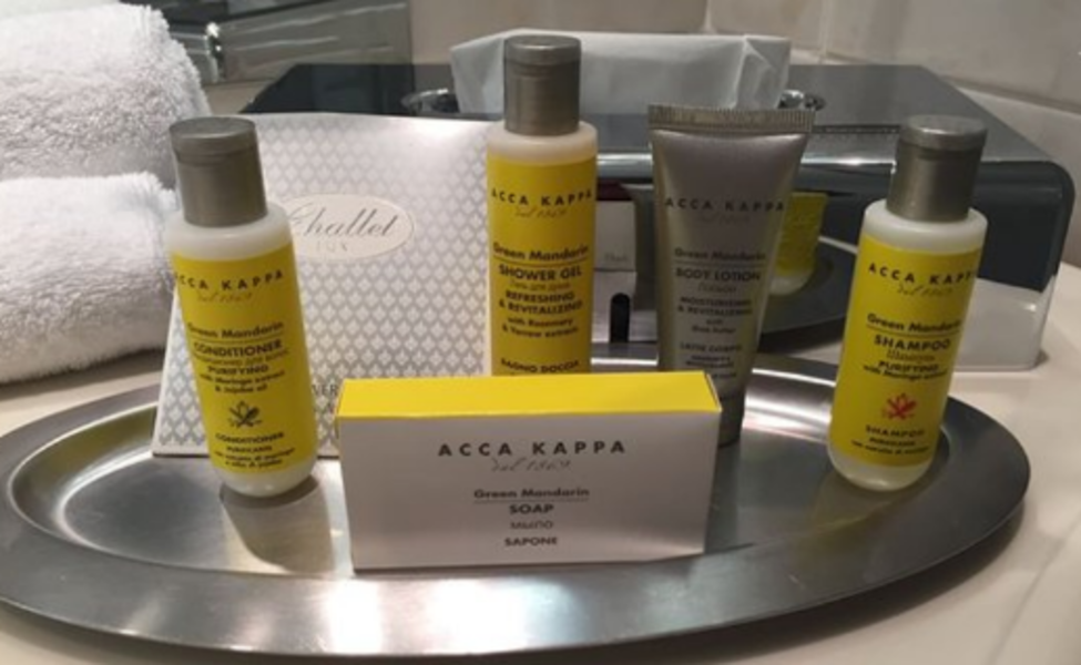 IHG, care deține Kimpton Hotels și Crowne Plaza, este în proces de înlocuire a cosmeticelor personale cu unele de dimensiuni mari în 843.000 de camere. Tranziția se va încheia în decembrie 2021.