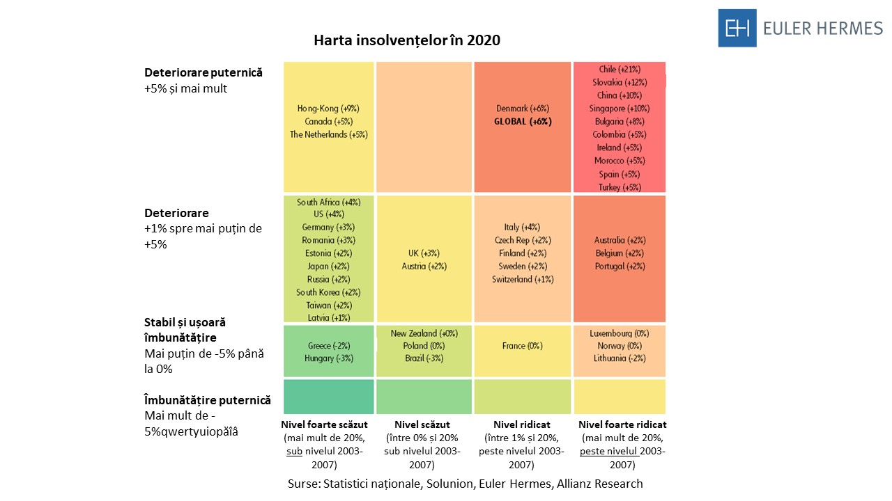 Euler Hermes, unul dintre marii asiguratori de credit comercial şi specialist în domeniul garanţiilor şi al colectării creanţelor, prezintă un indice global de insolvență, care arată că insolvențele vor crește în 4 din 5 țări în 2020.