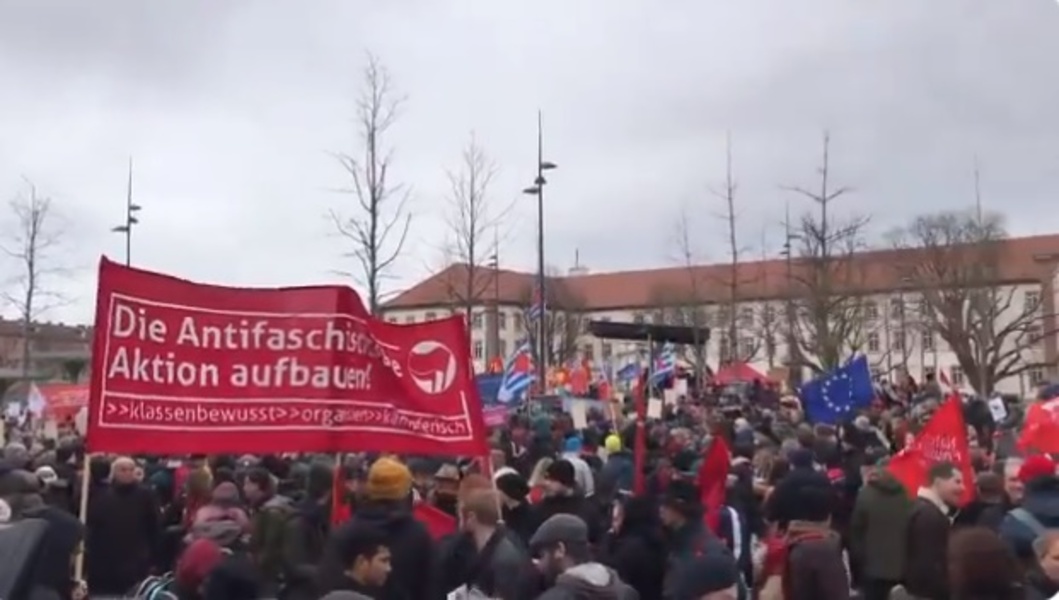 Protestatarii s-au adunat mai întâi Freiheitsplatz, care s-ar traduce Piața Libertății, din centrul orașului, pentru a comemora victimele atacurilor de miercuri. Apoi au mers prin oraș, în cele două locuri unde au fost împușcate victimele. Pe o pancartă mare scria „Uniți împotriva rasismului și fascismului”.