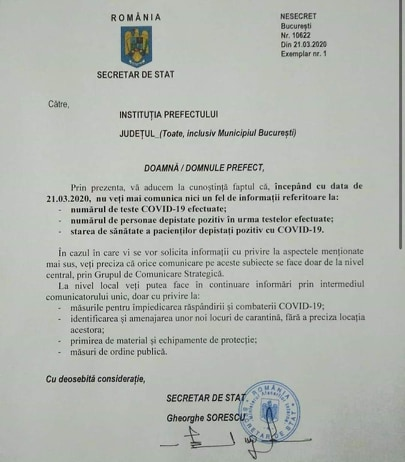 „Începând cu data de 21.03.2020, nu veţi mai comunica niciun fel de informaţii referitoare la: