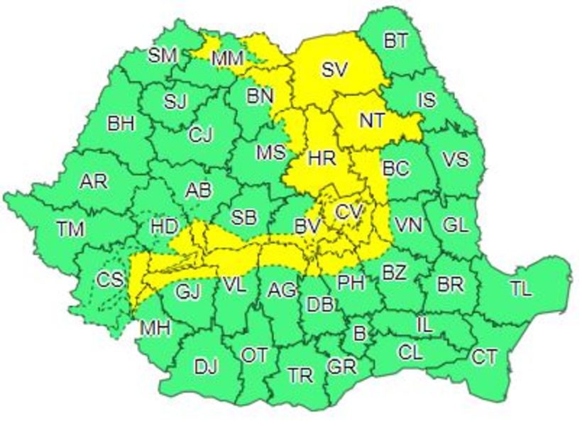 Informarea meteo este valabilă în intervalul 21 martie, ora 18.00 – 25 martie, ora 08.00 și vizează o răcire accentuată, ninsori și strat de zăpadă, intensificări ale vântului.