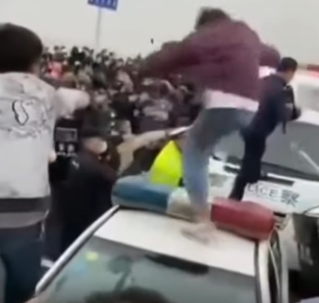 Vineri, imagini înregistrate la confruntările de pe pod arată un lanț de polițiști cu scuturi poziționați de-a latul podului și blocând mișcarea oamenilor din provincia Hubei spre orașul Jiujiang, în provincia Jiangxi. Mulțimea de oameni se îndrepta spre cordonul de polițiști scandând „Să mergem, Hubei!”