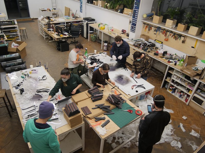 Mici firme, ONG-uri, sau elevi de liceu lucrează de zori la producţia de viziere pentru a-i ajuta pe cei din linia 1. Marea lor problemă – lipsa de materie primă