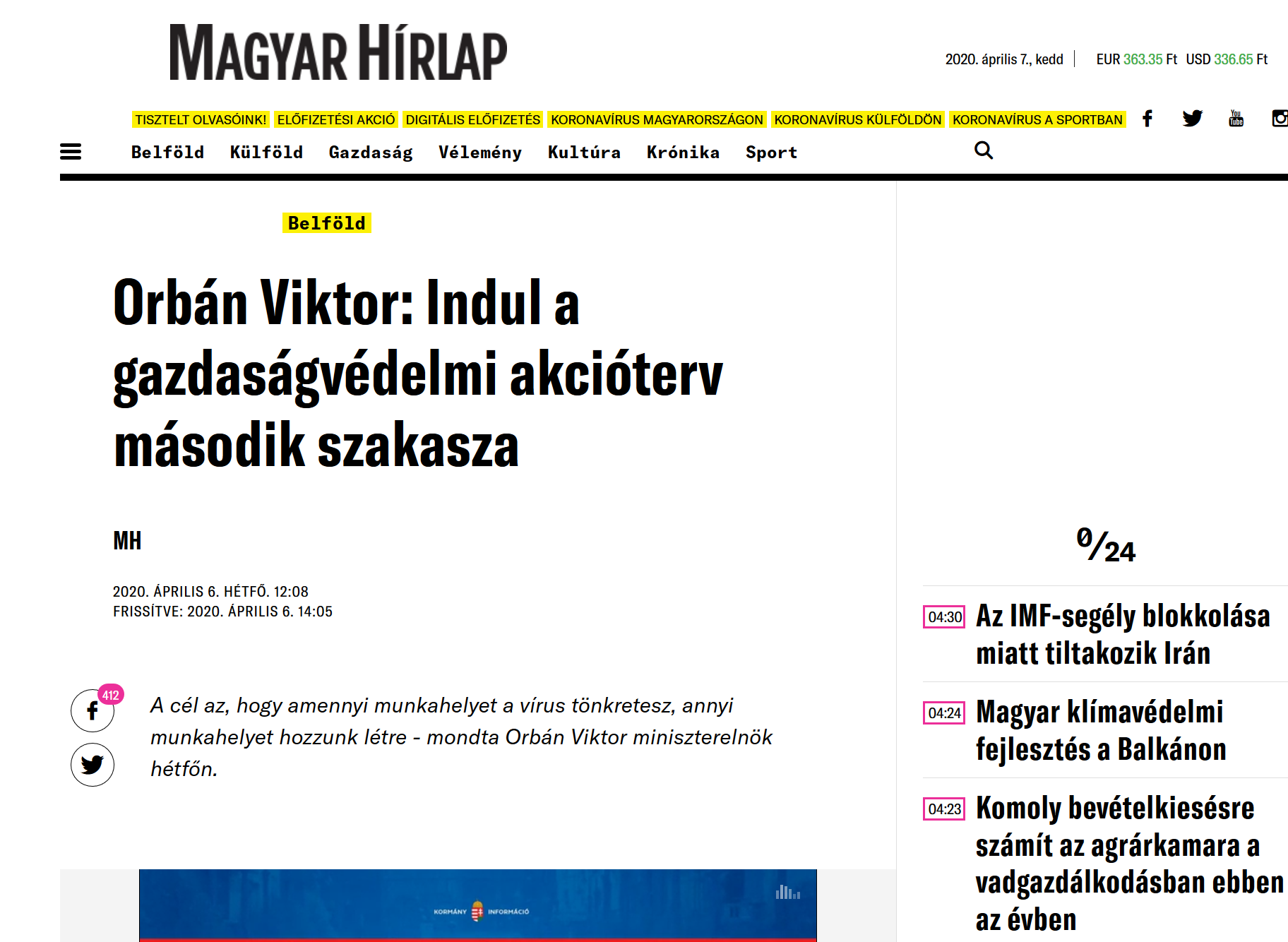 Magyar Hirlap: Viktor Orbán – Începe a doua etapă a programului de acţiune pentru protejarea economiei