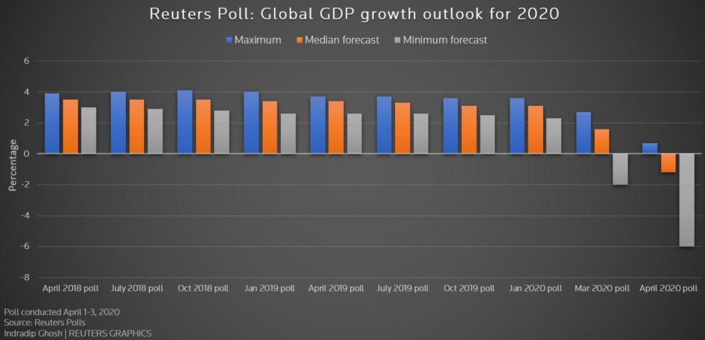 Însă cifra de 2,5% a FMI este una optimistă, o analiză a Reuters semnalează o creștere de cel mult 1%, în timp ce prognozele cele mai pesimiste indică o scădere de până la 6% a PIB-ului global pentru 2020.