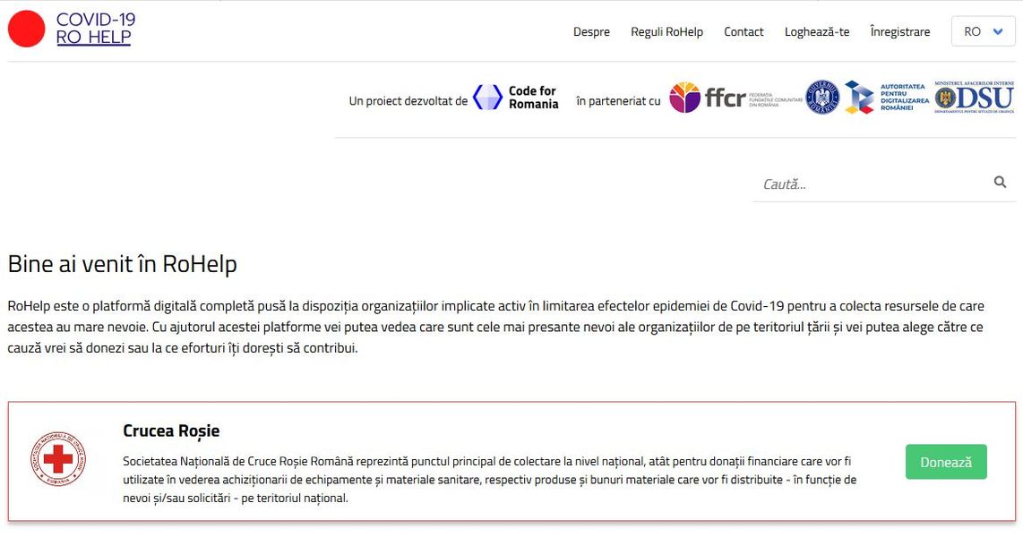 - Platforma RoHelp.ro este construită cu sprijinul și ajutorul Romanian American Foundation, ING Bank și al Fundației Vodafone România în parteneriat cu Guvernul României prin Autoritatea pentru Digitalizarea României, Departamentul pentru Situații de Urgență și Federatia Fundațiilor Comunitare din România și este deschisă tuturor asociațiilor și fundațiilor legal constituite în România care derulează activități pentru ameliorarea crizei generate de epidemia COVID-19„, se mai precizează în comunicatul de presă.