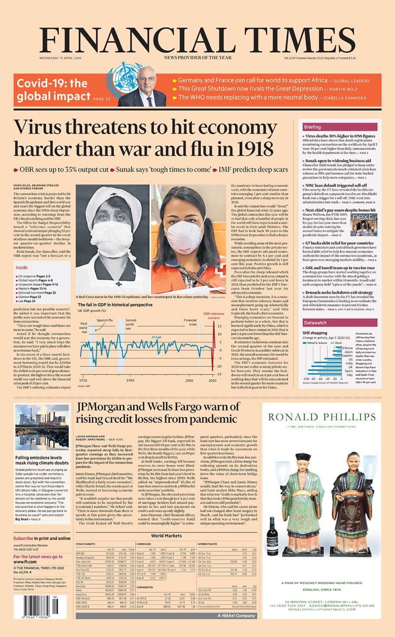 Criza coronavirusului va lovi economia globală cu o forță nemaiîntâlnită de la Marea Depresiune din 1930 și ar putea afecta Marea Britanie mai mult decât epidemia de gripă spaniolă și primul război mondial, conform avertismentelor FMI și Biroului pentru Responsabilitatea Bugetară din Marea Britanie.