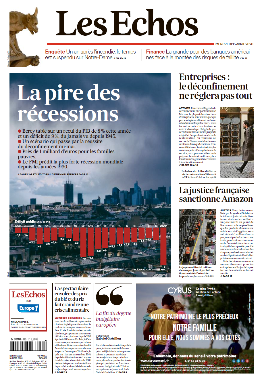 Les Echos: Cea mai urâtă recesiune. Conturile publice se degradează în viteză iar ce va fi după ieșirea din izolare rămâne în ceață
