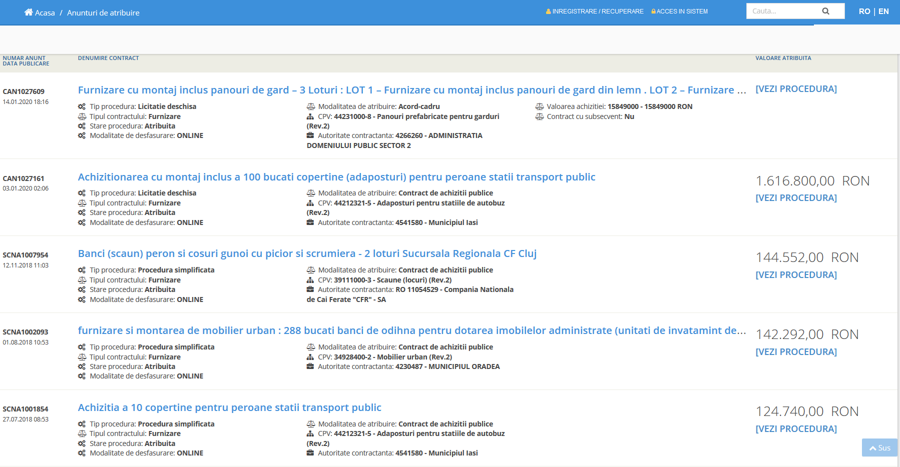 Potrivit datelor din noul sistem electronic de achiziții publice, firma a câștigat în ultimii ani 169 de contracte prin cumpărări directe, 4 prin proceduri simplificate și 4 licitații deschise.