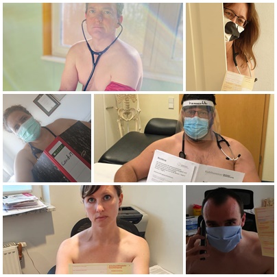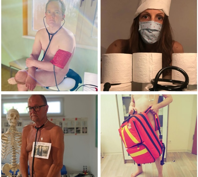 Doctorii s-au fotografiat dezbrăcați în cabinetele lor, acoperindu-și părțile intime cu dosare, aparatură medicală sau chiar suluri de hârtie igienică.