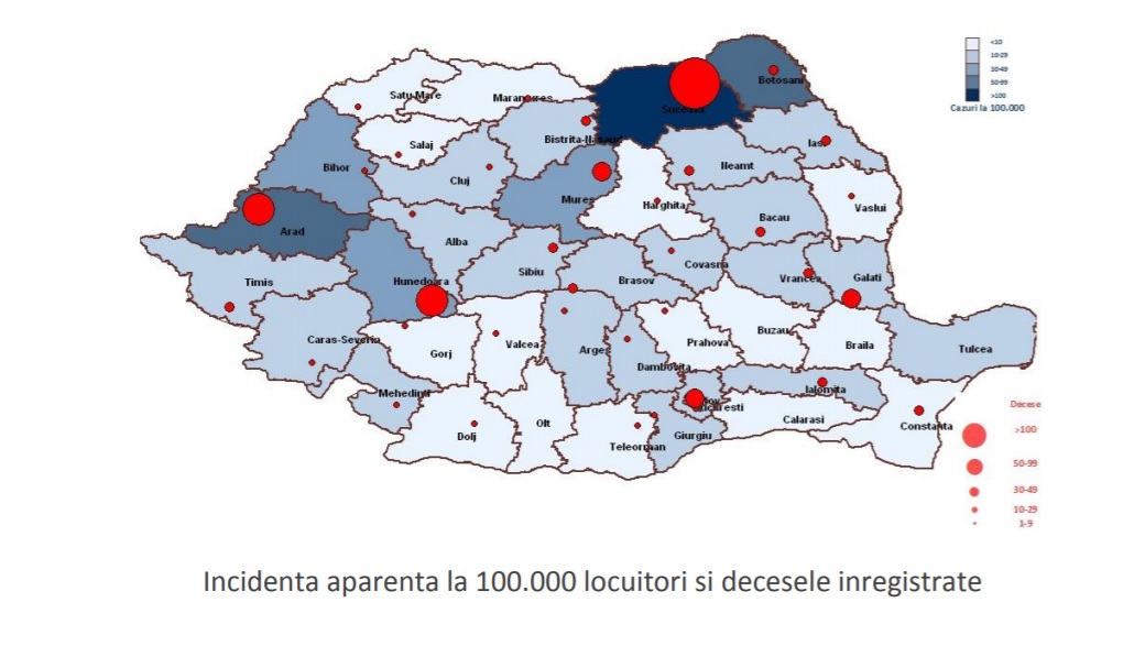 - 48,5% din totalul deceselor au fost înregistrate în Suceava, Hunedoara, Arad, București și Galați.