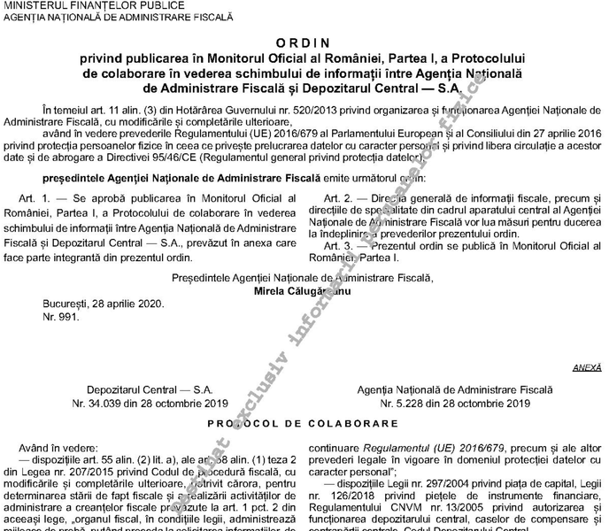 Conform protocolului, ANAF va răspunde direct de modalitatea în care salariații proprii folosesc accesul la baza de date și execută operațiunile.