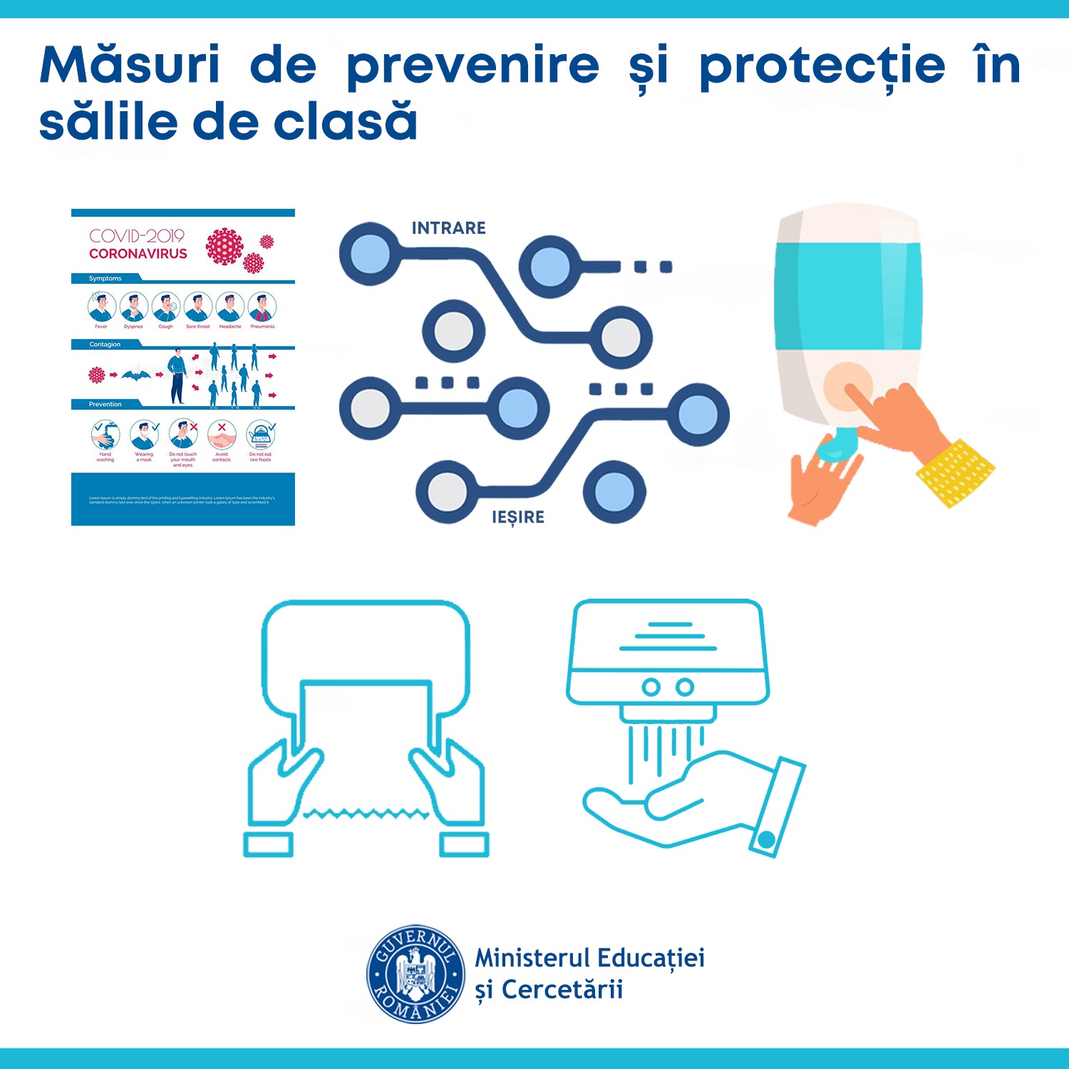 • intrările/ieșirile, precum și sensul de deplasare pe coridoare, către sălile de clasă și alte încăperi, sunt stabilite de unitatea de învățământ, semnalizate corespunzător și dezinfectate în mod regulat;
