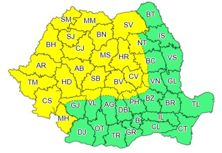 ANM a actualizat și informarea meteo transmisă ieri, aceasta fiind prelungită până vineri dimineață.