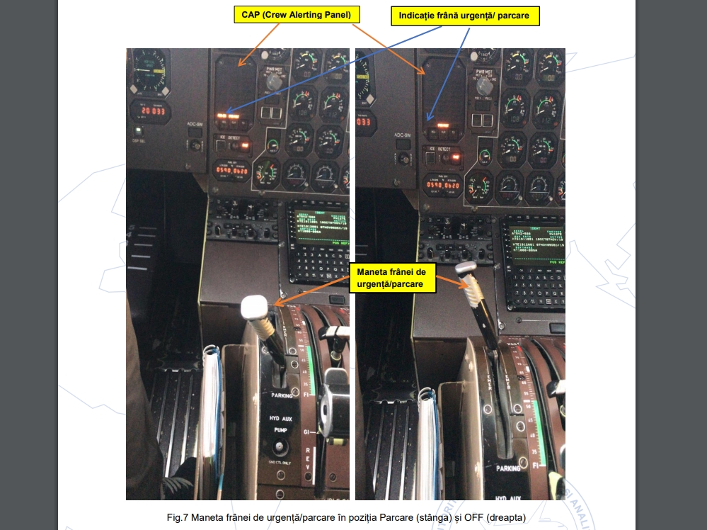 În detalierea investigației, anchetatorii au dezvoltat cauzele determinante și au descoperit cum s-a ajuns ca maneta frânei de urgență să nu fie în poziția corectă, dar și alte probleme din interiorul cabinei avionului.