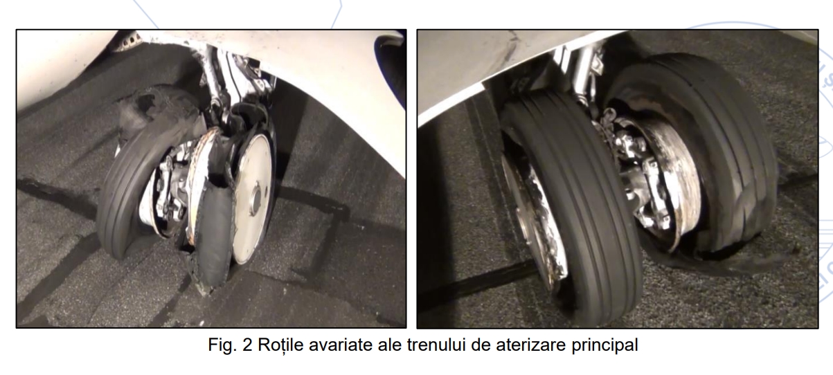 Toate pneurile și jantele au fost distruse în totalitate la aterizare