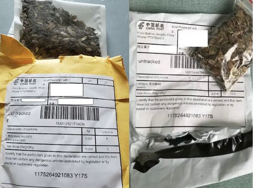 Numeroase persoane din Statele Unite, Canada sau Regatul Unit au relatat de la sfârșitul lunii iulie că au primit pachete cu semințe pe care nu le-au comandat, adresa expeditorului arătând că acestea au fost trimise din China.
