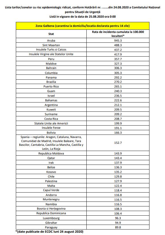 - actualizarea listei țărilor și zonelor cu risc epidemiologic ridicat.
