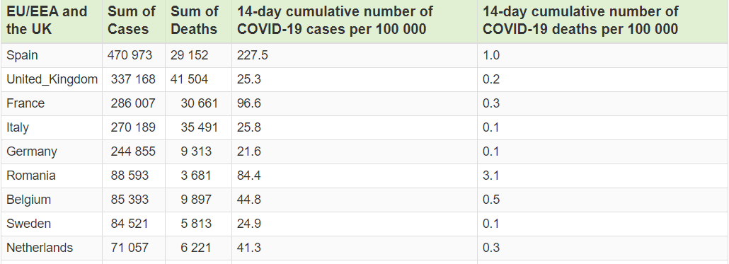 Astfel România are o rată a deceselor de 3,1 la 100.000 de locuitori, potrivit unui raport al Centrului European pentru Prevenirea şi Controlul Bolilor.