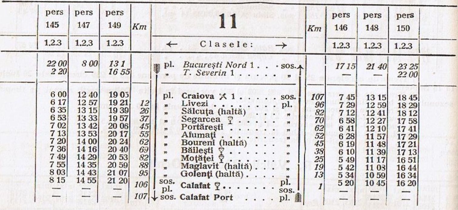 Orarul trenurilor Craiova – Calafat, în Mersul Trenurilor din 1934 când clătoria dura cu o oră MAI PUȚIN decât acum