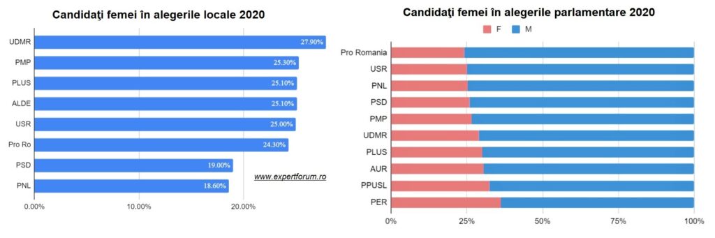 Există multe situaţii, aşa cum se constată în cazul listelor pentru Consiliul Județean, unde la prima vedere procentele par în regulă, dar de fapt mare parte din femei sunt de figuraţie, pe locuri ne-eligibile. Cea mai mare discrepanță între sexe se observă la poziția 1 pe listele de candidaţi în alegerile naţionale, ocupată predominant de bărbați. Asta nu-i deloc irelevant ci reprezintă un bun indicator al influenţei reale a femeilor în partid. Mai departe, explică în bună parte de ce, în negocierile dure pentru o coaliţie din trei partide ce trebuie să-şi împartă număr limitat de ministere, titularii de portofolii tind să se aleagă dintre aceşti şefi de liste. Cu alte cuvinte, lucrurile pleacă cu o anumită tendinţă chiar de jos, de la baza de organizaţii politice pe care stă democraţia românească. Fără diagnostic corect nu vom găsi nici soluţiile care să funcţioneze.