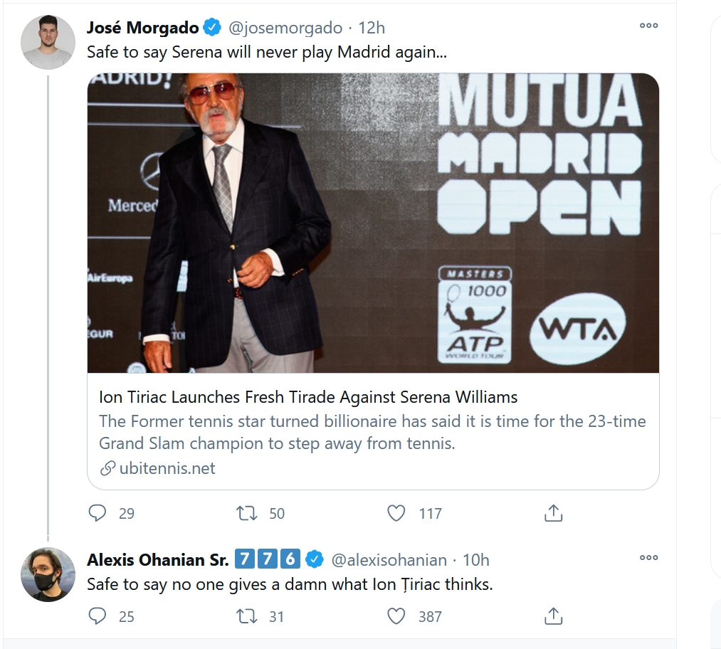 „E clar că nimeni nu dă doi bani pe ceea ce spune Țiriac”, a scris Alexis Ohanian pe Twitter.