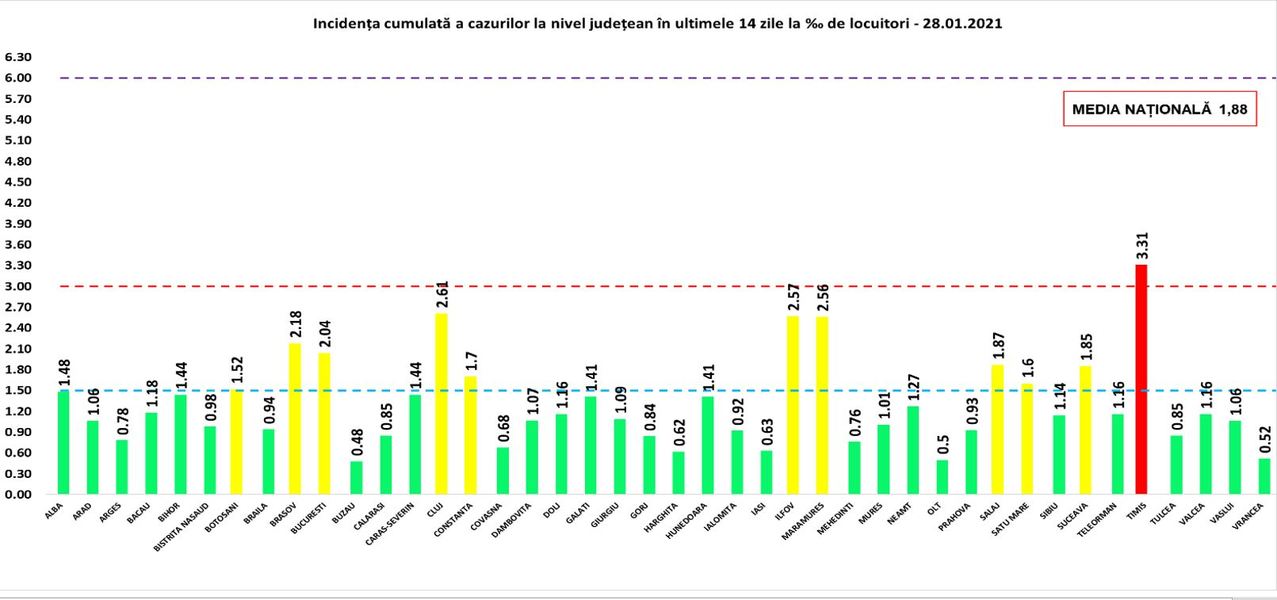 GRAFIC Rata infectării cu coronavirus rămâne în ”zona roșie” doar în Timiș. Situația din București și restul județelor – Coronavirus