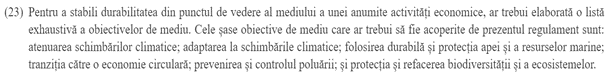 Taxonomia investițiilor durabile (verde) este un mecanism ce asigura transparență și credibilitatea investițiilor verzi și minimizează riscul pe termen mediu și lung, prin crearea unor categorii clare și credibile pentru aceste investiții; fixează un standard înalt al investițiilor în proiectelor destinate să sprijine accelerarea tranziției către o economie cu zero emisii de carbon până în 2050. Este o schemă voluntară, nu o obligativitate.