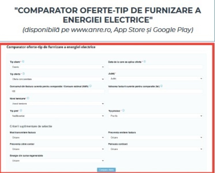Consiliul Concurenței spune că au fost analizate, pe baza datelor disponibile în comparatorul de prețuri al ANRE, prețurile oferite de furnizorul de ultimă instanță pentru serviciul universal, respectiv pentru furnizarea în regim concurențial.