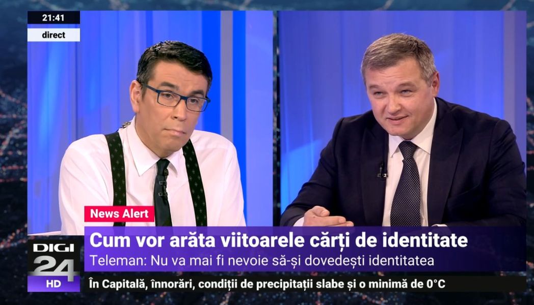 • „O să începem cu Bucureștiul, în iunie-iulie va fi un test pilot de interconectare și interoperabilitate a bazelor de date ale Administrațiilor Financiare din București, unde sunt date care sunt necesare de exemplu pentru preschimbarea unor documente, mașină..O dată autentificat în bazele de date nu va mai fi sarcina cetățeanului să se mute cu hârtiile de la o instituție la alta.”, a declarat miercuri Ciprian Teleman, ministrul Digitalizării, la emisiunea Jurnalul de seară de la Digi24, moderată de Cosmin Prelipceanu.