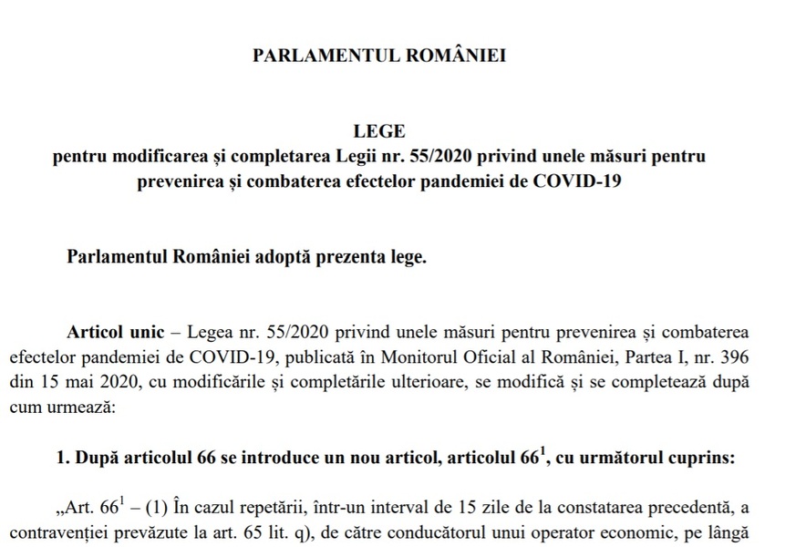 Guvernul a primit joi avizul CES pe proiectul de lege privind închiderea pentru 15 sau 30 de zile a localurilor care nu respectă măsurile anti-COVID. Votul patronatelor și ONG-urilor (societatea civilă) a fost favorabil, dar au spus că o măsură mai bună ar fi mărirea amenzii până la 100.000 de lei. Sindicatele, care au dat aviz negativ, au venit cu propunerea de 50.000 lei, motivând și faptul că nu e destul personal care să dispună închiderea temporară localurilor.