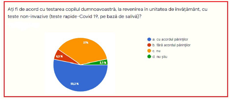 Acest procent ne arată că şi dacă ar primi acceptul de testare din partea părinţilor, ţinând cont de numărul cadrelor medicale angajate ȋn cadrul cabinetelor şcolare, Ministerul Educaţiei ȋmpreună cu Ministerul Sănătăţii, nu vor avea posibilitatea să asigure personal medical ȋn fiecare unitate de ȋnvăţământ pentru testarea în masă.