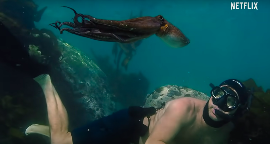 Încă din trailer, Craig Foster (producătorul care-și tratează burnout-ul cu sesiuni de freediving) ne spune că atunci când te apropii de caracatițe și le studiezi în habitatul lor îți dai seama cât de similari suntem.