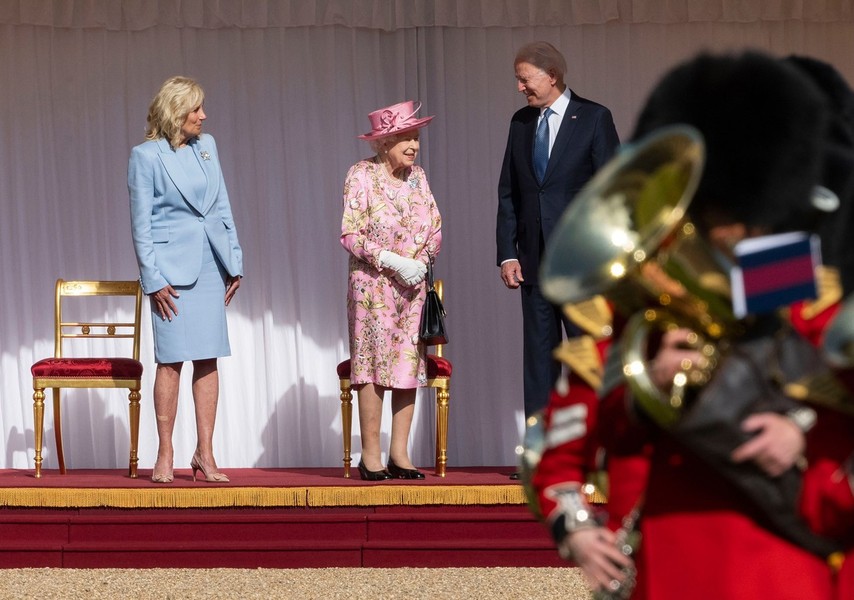 Elisabeta a II-a i-a întâmpinat pe 13 iunie pe soții Biden într-un careu al castelului unde cuplul a fost salutat de Primul Batalion de Grenadieri ai reginei.