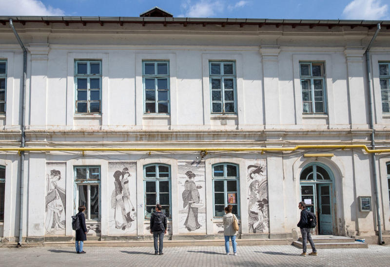 Mergem spre Universitatea Națională de Arte, unde dăm peste un zid pe care este sculptat chipul lui Brâncuși de celebrul artist portughez Vhils sau peste frumoasele personaje asiatice care decorează pereții instituției.