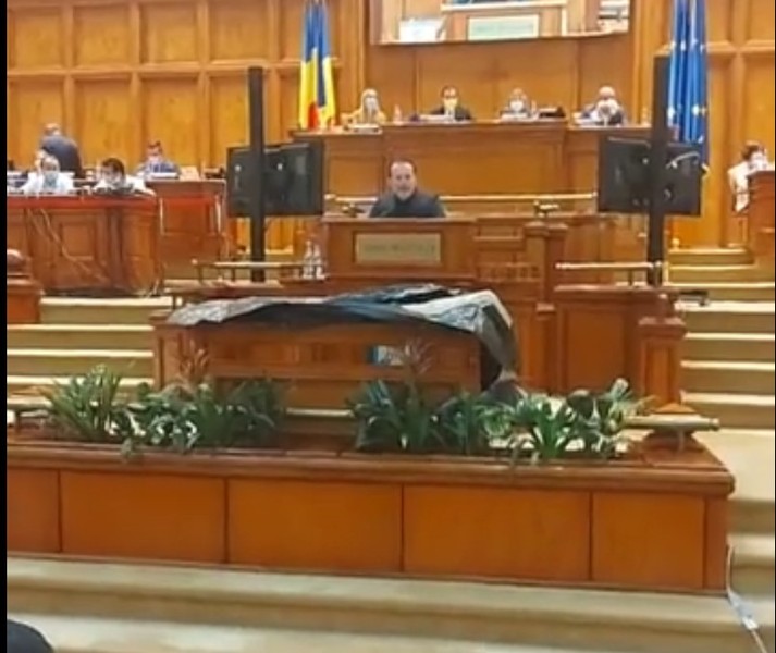 Senatoarea Diana Șoșoacă a făcut scandal în plenul Parlamentului, acuzând guvernul pentru gestionarea pandemiei și felul în care au fost îngropați oamenii care au murit de COVID-19. În finalul intervenției, care a fost întreruptă de președintele de ședință Ludovic Orban, Diana Șoșoacă a pus în fața premierul Cîțu un sac de morgă.