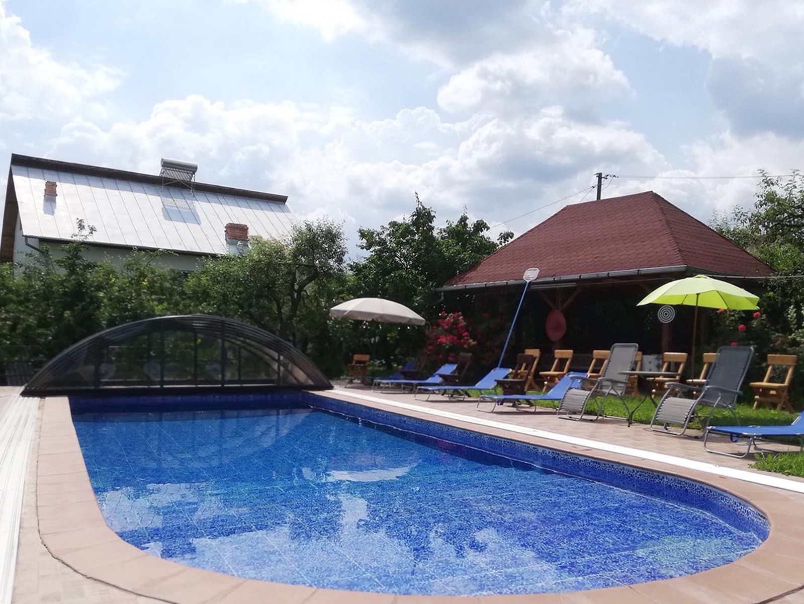 - Piscina exterioara acoperita, cu apa incalzita – intr-un cadru natural salbatic, disponibila gratuit pentru oaspetii pensiunii