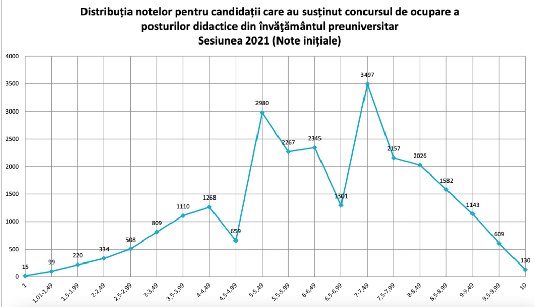 Rezultate Titularizare 2021. Graficul notelor obținute – de la 15 note de unu la 130 note de zece / Peste 200 candidați au luat sub nota doi – Educatie