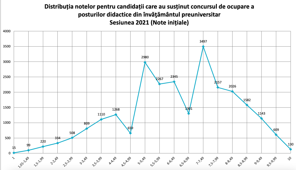 GRAFIC Notele obținute la titularizare 2021 înainte de contestații (click aici dacă nu se vede pe mobil)