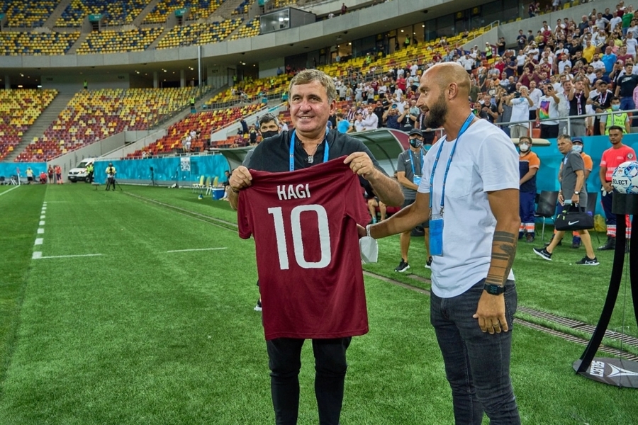 Înaintea partidei, Gheorghe Hagi (antrenorul echipei Farul) a primit un cadou din partea rapidiştilor: un tricou vişiniu cu numele său şi numărul 10, dar şi un mare buchet de flori.