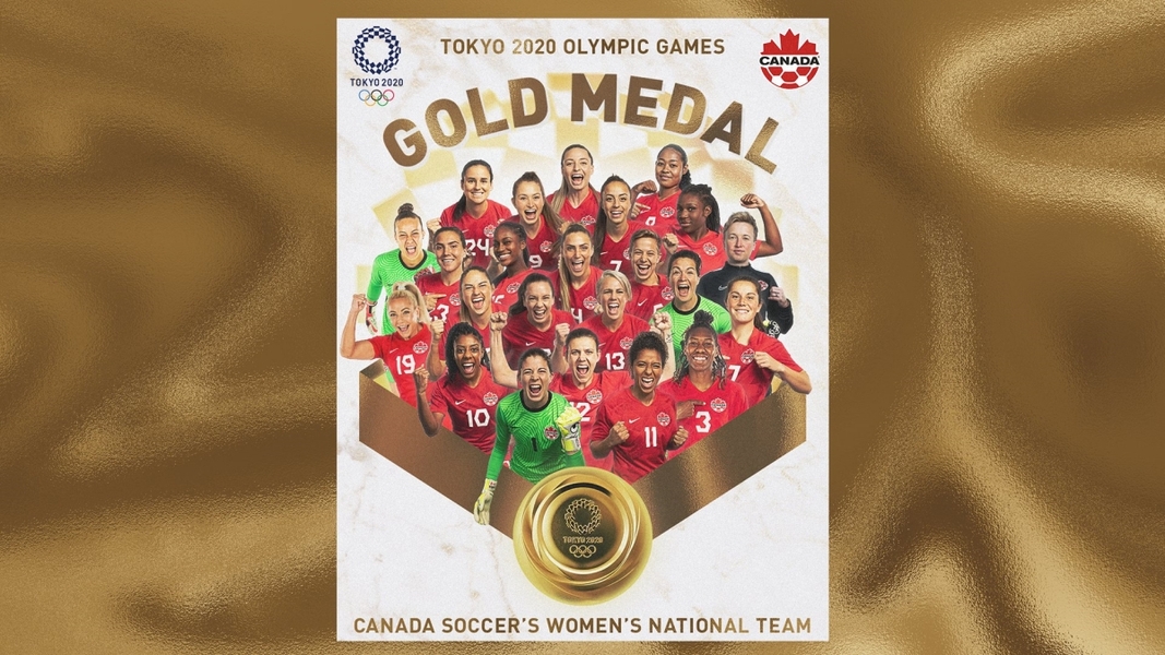 For the first time, the women’s #Football #Gold medal winners are @CanadaSoccer_EN!#StrongerTogether | @Tokyo2020 | @FIFAWWC pic.twitter.com/jyplsZJ9Se