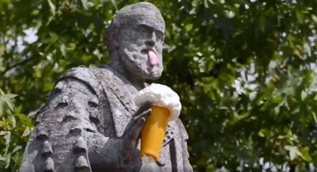 În micul oraș King’s Lynn din estul Angliei, Banksy redă ”statuia” inginerului Frederick Savage, renumit pentru motoarele sale cu aburi, cu limba scoasă savurând înghețată.