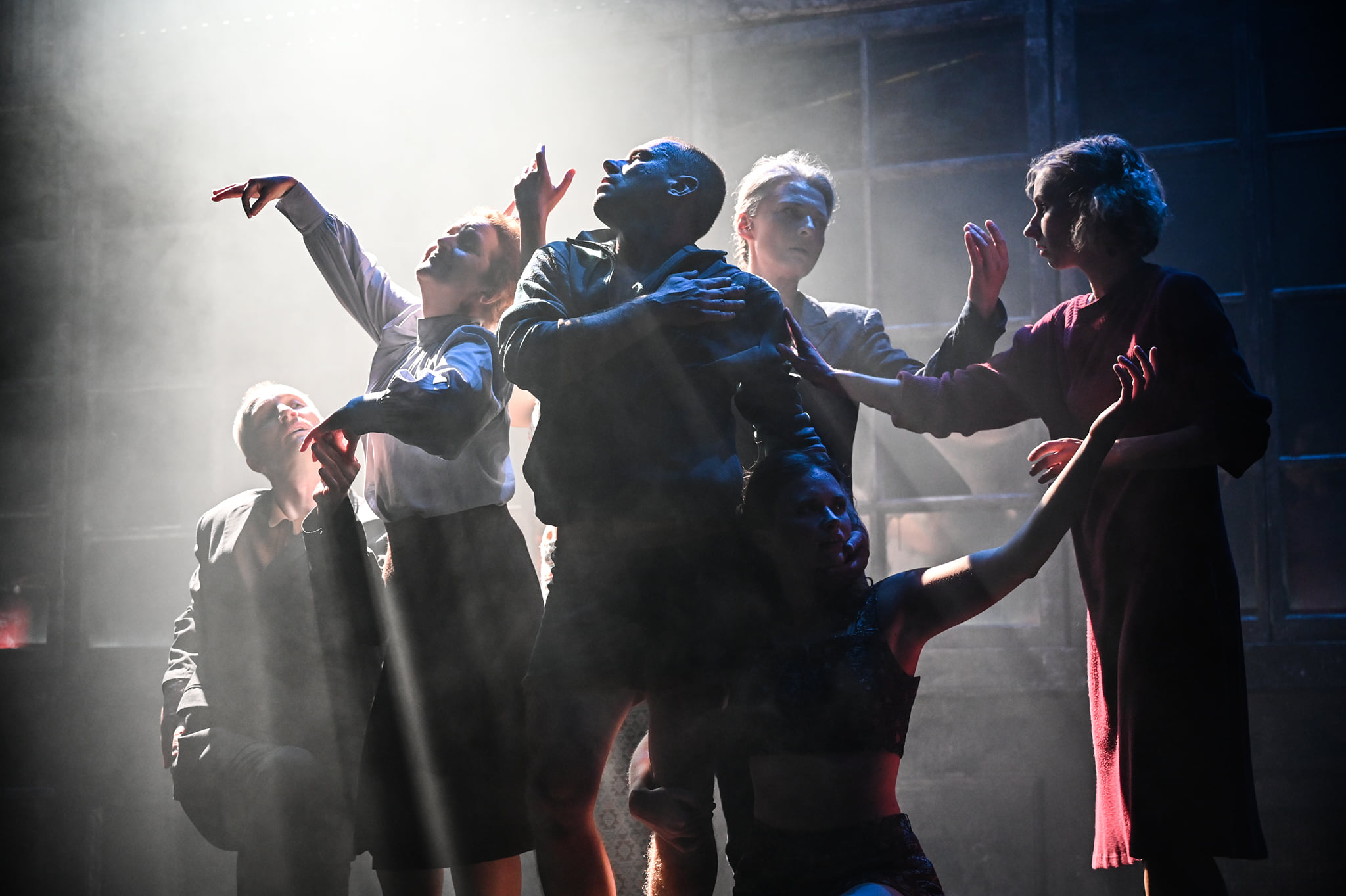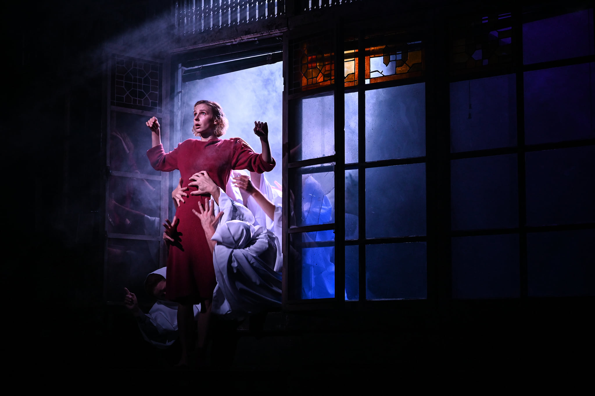 Spectacol de dans într-un pavilion cu geamuri murdare, degradate. Nu există supratitrări. Pentru că personajele vorbesc un limbaj absurd, un limbaj care pare de la sfârșitul timpurilor. După ușă se aude muzica, fetele se contorsionează, băiatul își întinde mușchii pe o bancă de lemn. Bărbatul mai în vârsta are o criză de epilepsie sau își exprimă sentimentele? Dacă ieși pe altă ușă, într-o lumină orbitoare, cu geamantanul, o săgeată te străpunge – așa i se întâmplă unei dansatoare, deși își dorea mult să iasă pe acea ușă. Fluturi mari, fosforescenți sunt ținuți în borcane. Există un radio vechi. Un coș mare de gunoi. Foi volante, hârtie, pe care se derulează nu știu ce poveste din capul personajelor. Ce e lumea asta? Se aud din când în când raid-uri de bombardamente, izbucnesc scântei și apoi lumini albastre spală toată incinta. E un motel de la marginea lumii? Un ring de dans unde sălășluiesc fantomele, unde tonomatele sunt defecte și ființele încearcă să audă muzica acestei defecțiuni? E o lume închisă, tragicomică, o lume în care, dacă ieși pe ușă, s-ar putea să te afunzi în necunoscut.