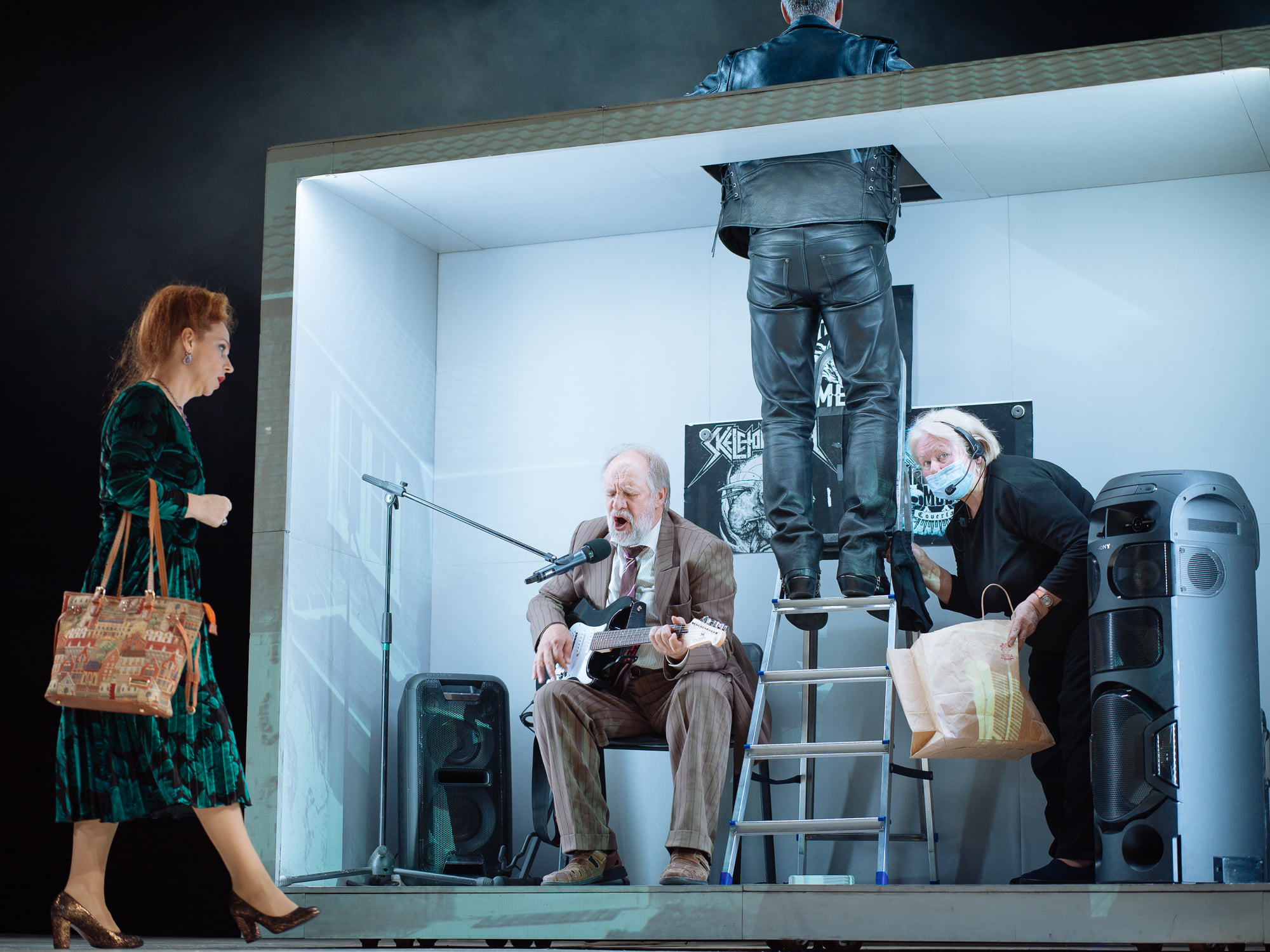 Cu spectatorii kitsch și vocali care întrerup un spectacol serios. Spectatorii-actori, bineînțeles. Stau pe scaune alături de noi, spectatorii reali. Un cuplu de bătrânei care vor să-și bage nepotul în spectacol. Vin din ce în ce mai aproape de scenă, își pun scaunele pe scenă, dictează ce urmează să se întâmple. Sunt pudici, reacționează, nu le place povestea, vor romantism comercial, trăire, doar așa pot să aplaude. Îi criticăm, de la înălțimea nasului nostru pe sus? Și nepotul lor face haos: cere romantism, cere un cavaler, așa iese un spectacol amatoricesc, ființele kitsch se cațără pe trupa de teatru și o devorează. Cheia e comică – dar comentariul social e valid. Ce e arta, e o enclavă pentru elite, e popcorn pentru mase, de cine și pentru cine e făcută? Să dăm cu roșii în spectatorii nemulțumiți? Declan Donnellan a făcut un spectacol autentic, postmodern, despre percepția artei, în speță, a teatrului, această artă care îți fură simțurile-gândurile-emoțiile live. Și cât de genuin se simte acum acest termen din mass – media: live, pe viu, în sală, cu Ceilalți.