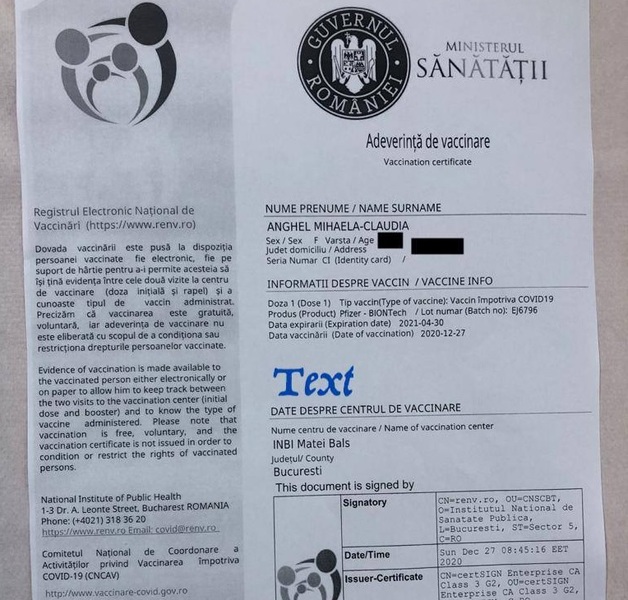 „Vom imprima din nou pe certificatul de vaccinare, pe adeverință, data expirării. În momentul în care s-a introdus şi doza 3 pe adeverinţa de vaccinare, având în vedere că în prima etapă au fost foarte multe confuzii, populaţia a înţeles că data expirării înseamnă data expirării protecţiei vaccinului sau data expirării adeverinţei, am considerat că poate nu mai este util să imprimăm această dată a expirării lotului de vaccin. Am revenit asupra acestei decizii şi data va fi în zilele următoare imprimată pe adeverinţă, astfel încât pentru fiecare lot în parte să existe această dată de expirare, pentru ca oamenii să ştie cât se poate de clar că nu este vorba despre vaccinuri care sunt expirate”, a afirmat Valeriu Gheorghiţă.