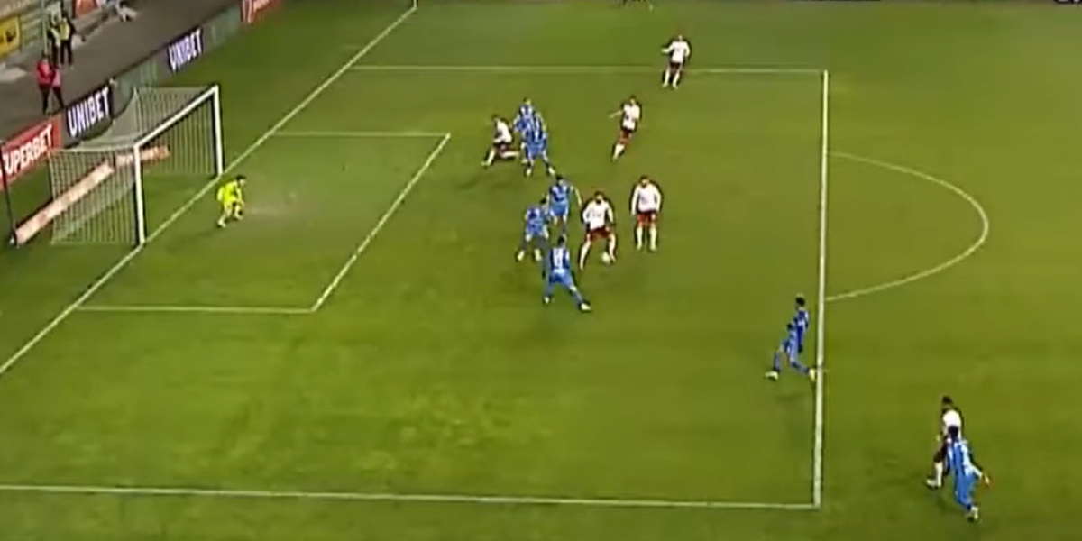 În minutul 89, Morais a centrat din afara careului, Săpunaru a deviat cu călcâiul, iar Marzouk, aflat într-o poziție clară de ofsaid, a marcat pentru Rapid.