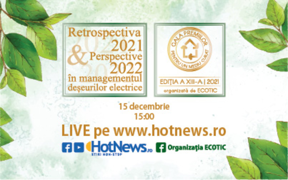 ECOTIC va premia pe 15 decembrie câștigătorii celei de-a XIII-a ediții a Galei Premiilor pentru un Mediu Curat. Evenimentul online va fi transmis LIVE, începând cu ora 15:00, pe platformele de social media Hotnews, www.hotnews.ro, precum și pe pagina de Facebook Organizatia ECOTIC.