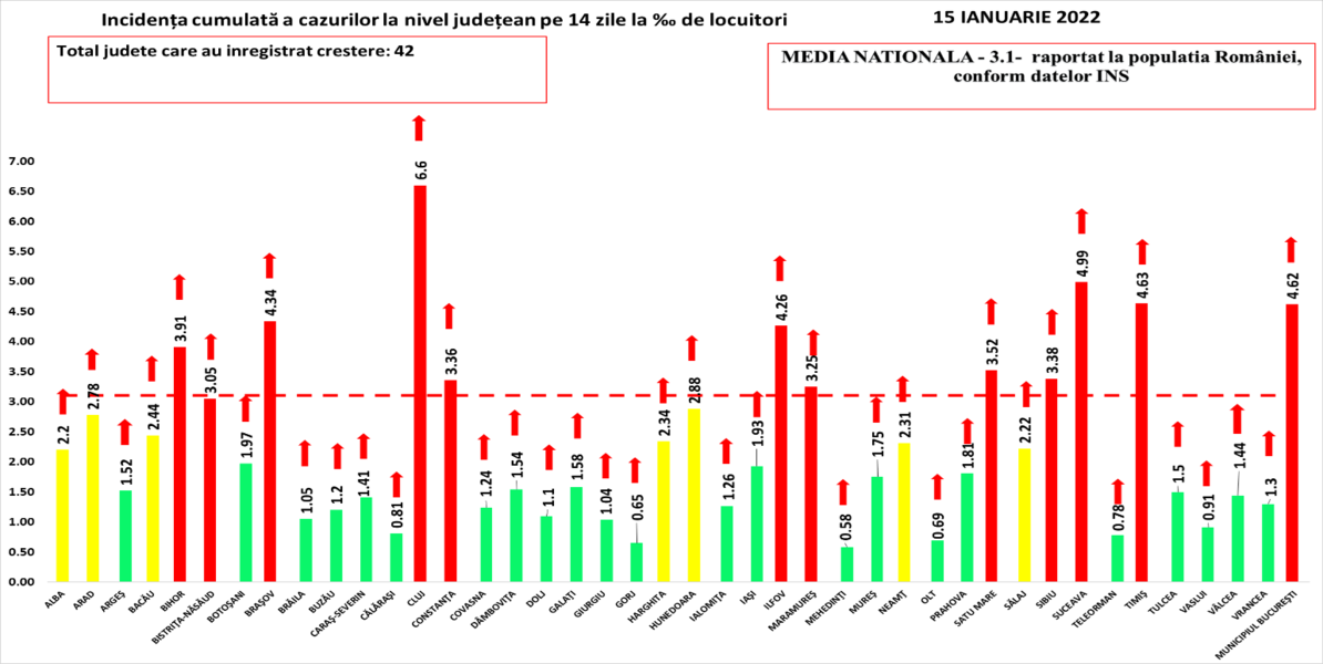 Cea mai mare incidență este în județul Cluj – 6,6 la mie, urmat de Suceava – 4,99, Timiș – 4,63, București – 6,62 și Brașov – 4,34