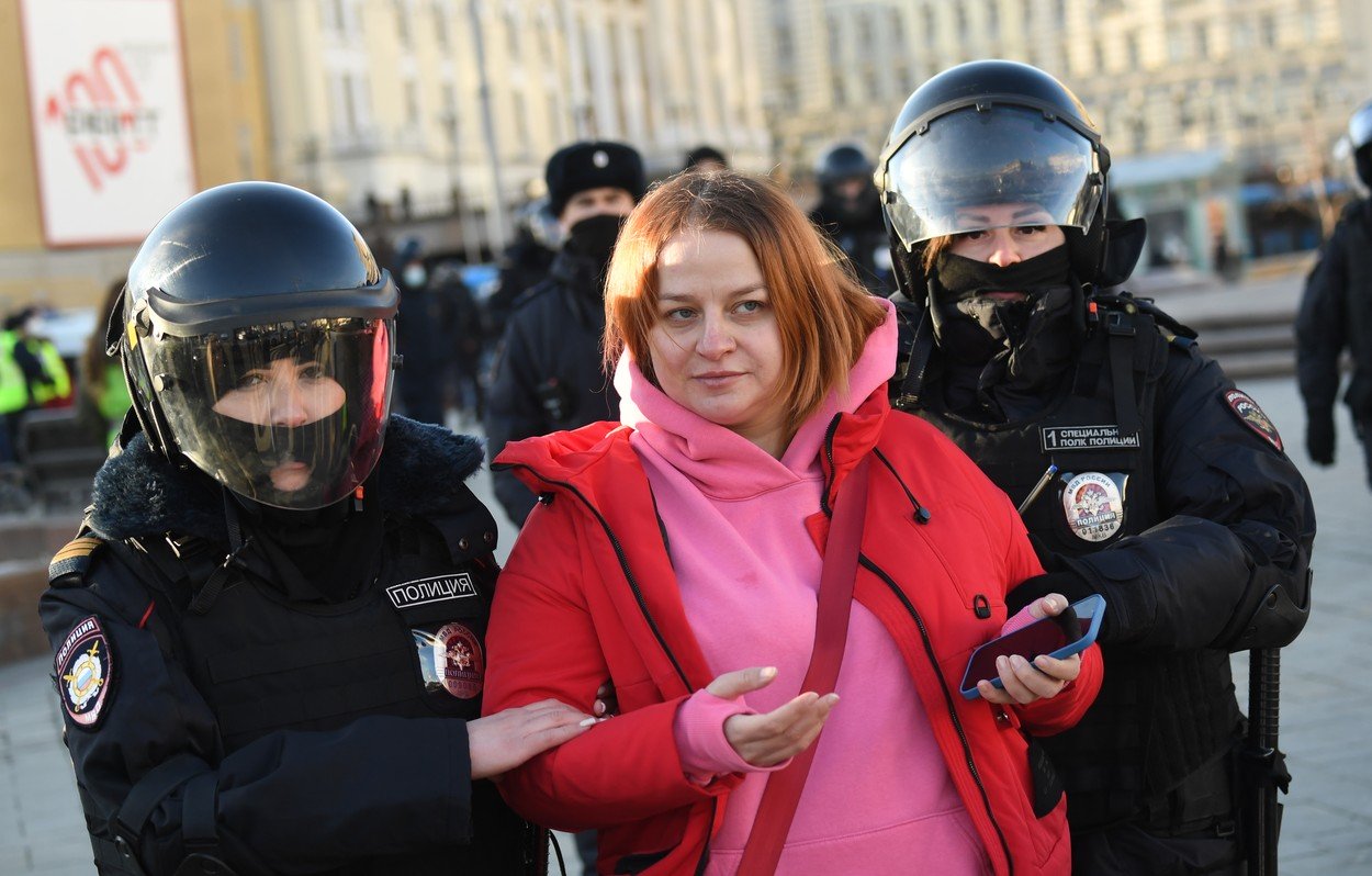 FOTOGALERIE Intervenția polițiștilor care au luat pe sus oamenii ce protestau față de războiul din Ucraina